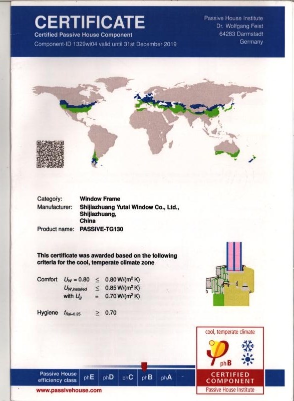 承揽的河北省建筑研究院被动窗项目,经国家检验中心检测,保温性能达到1.0W/(㎡•K))为全国顶尖水平